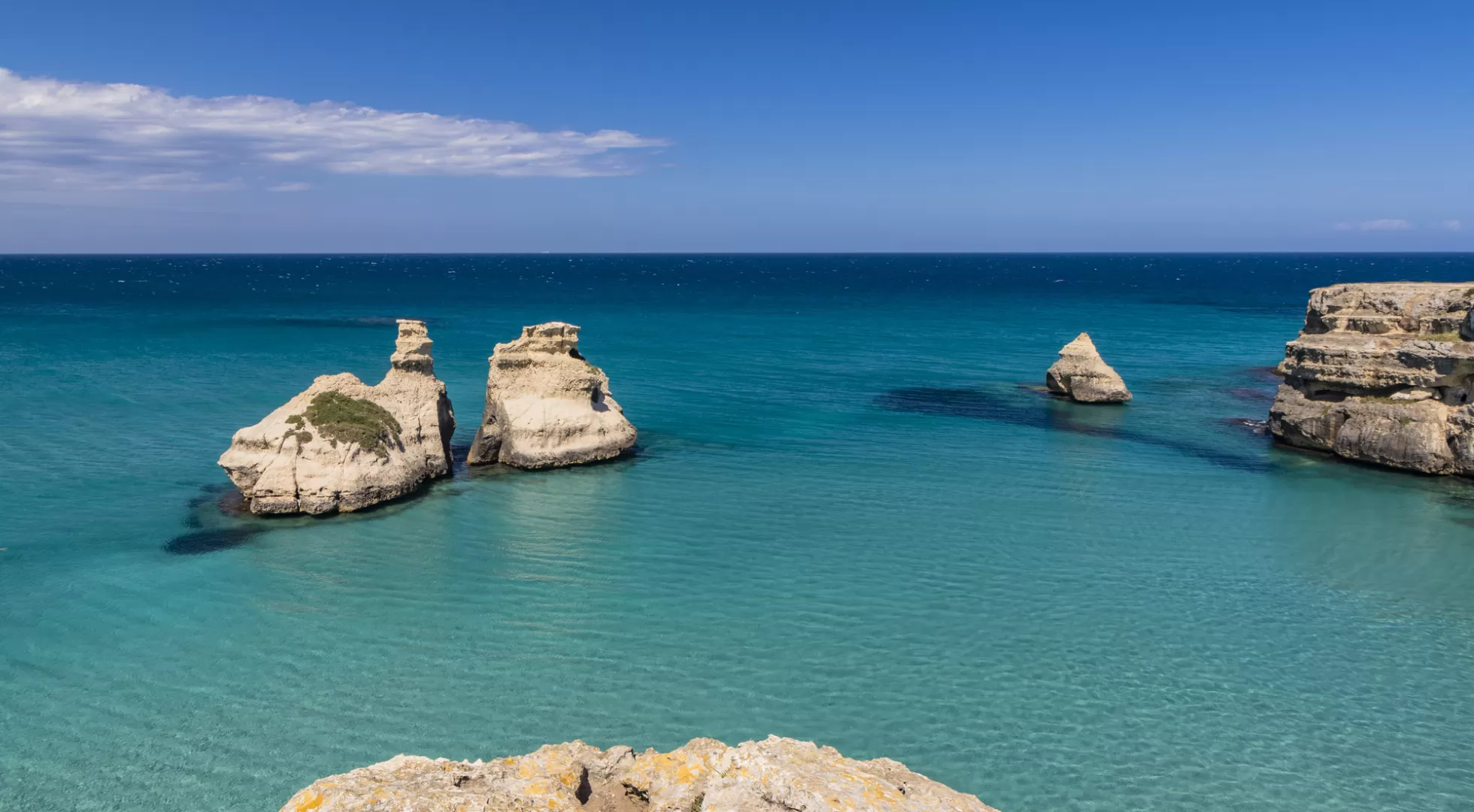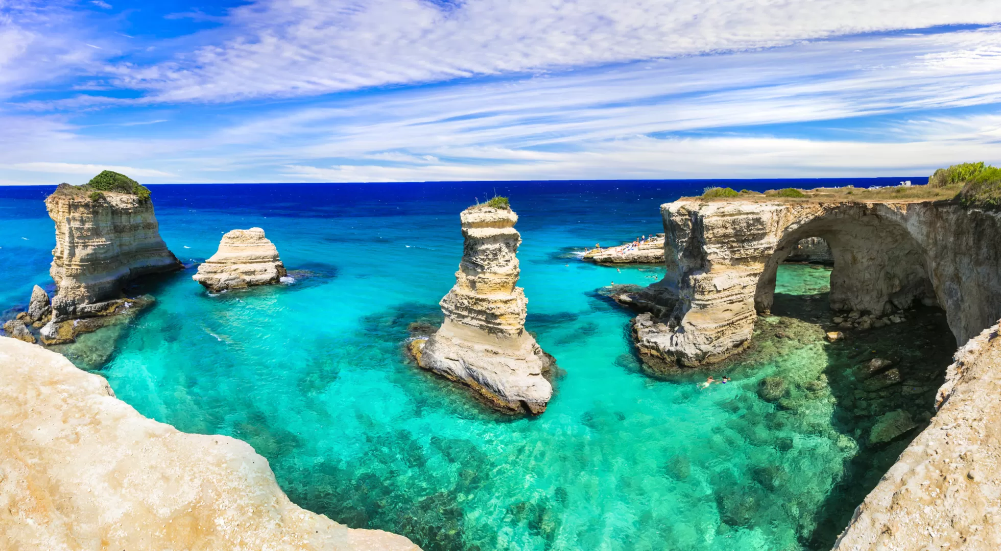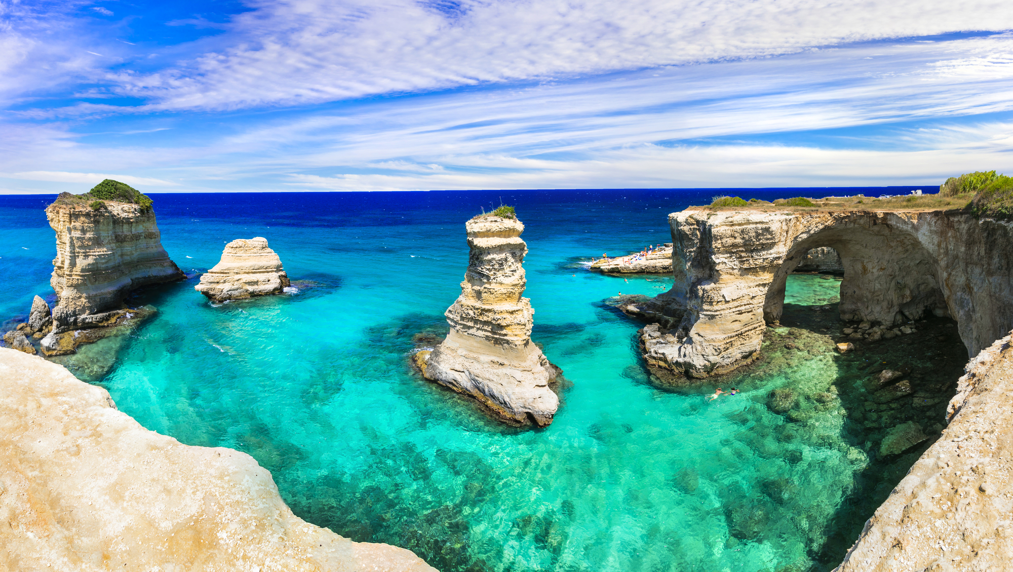La costa adriatica è prevalentemente rocciosa, caratterizzata spesso da falesie e faraglioni. Il tratto costiero a Sud di Lecce fino a Santa Maria di Leuca è inoltre noto per la presenza di numerose splendide grotte carsiche, raggiungibili via mare e/o via terra.