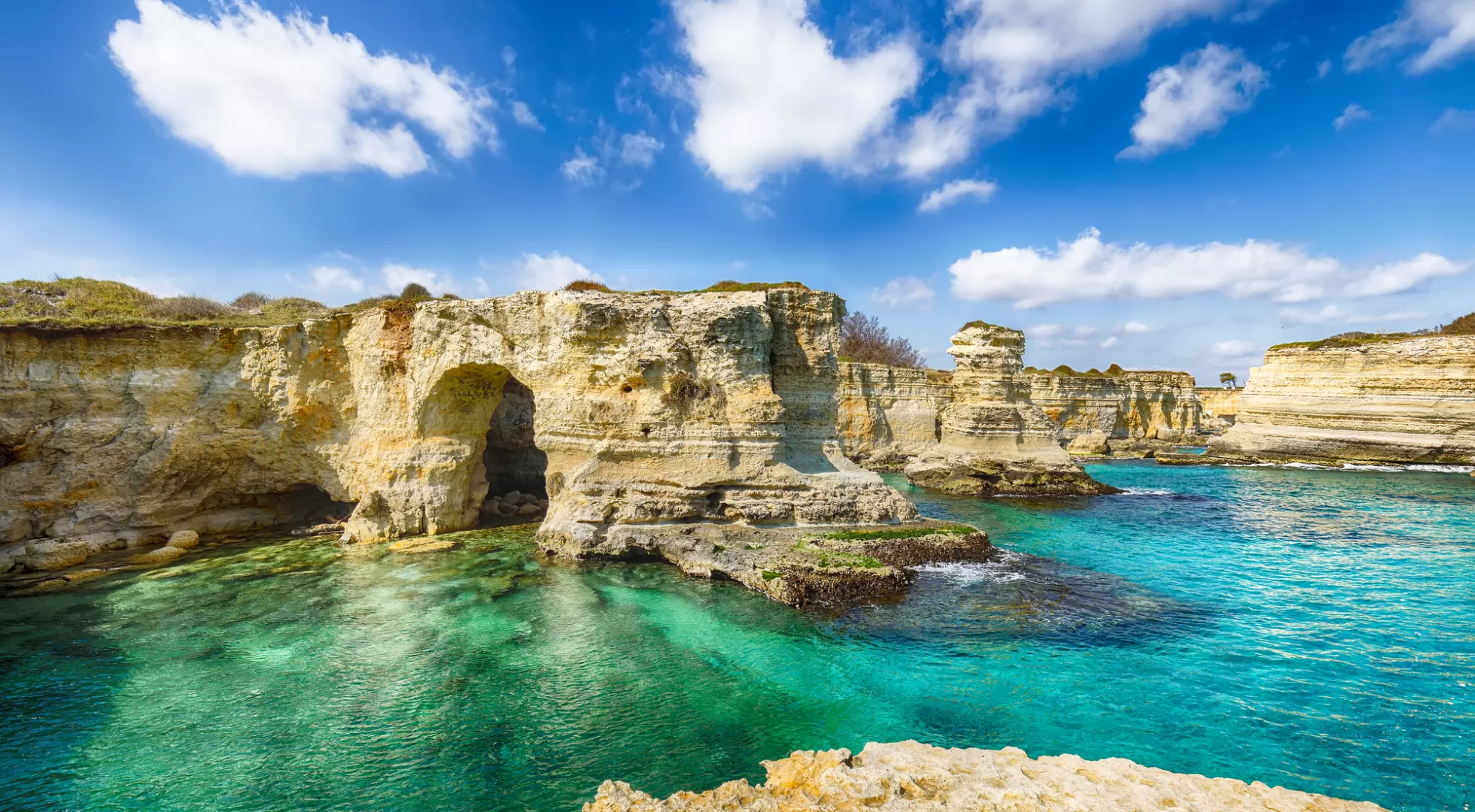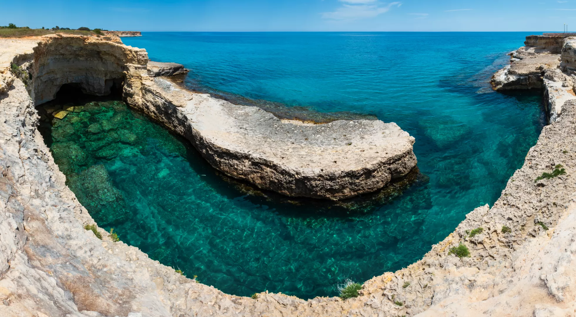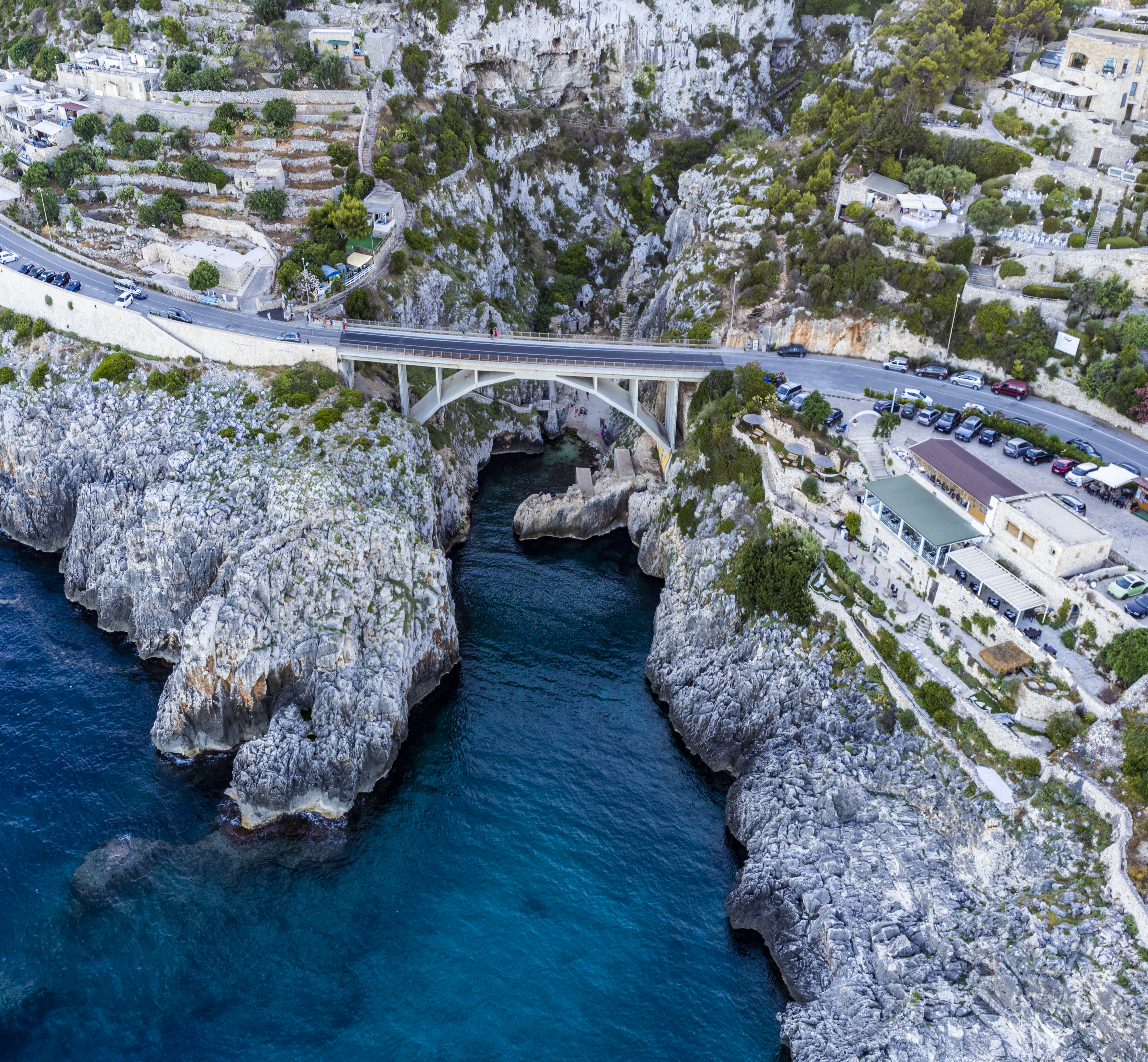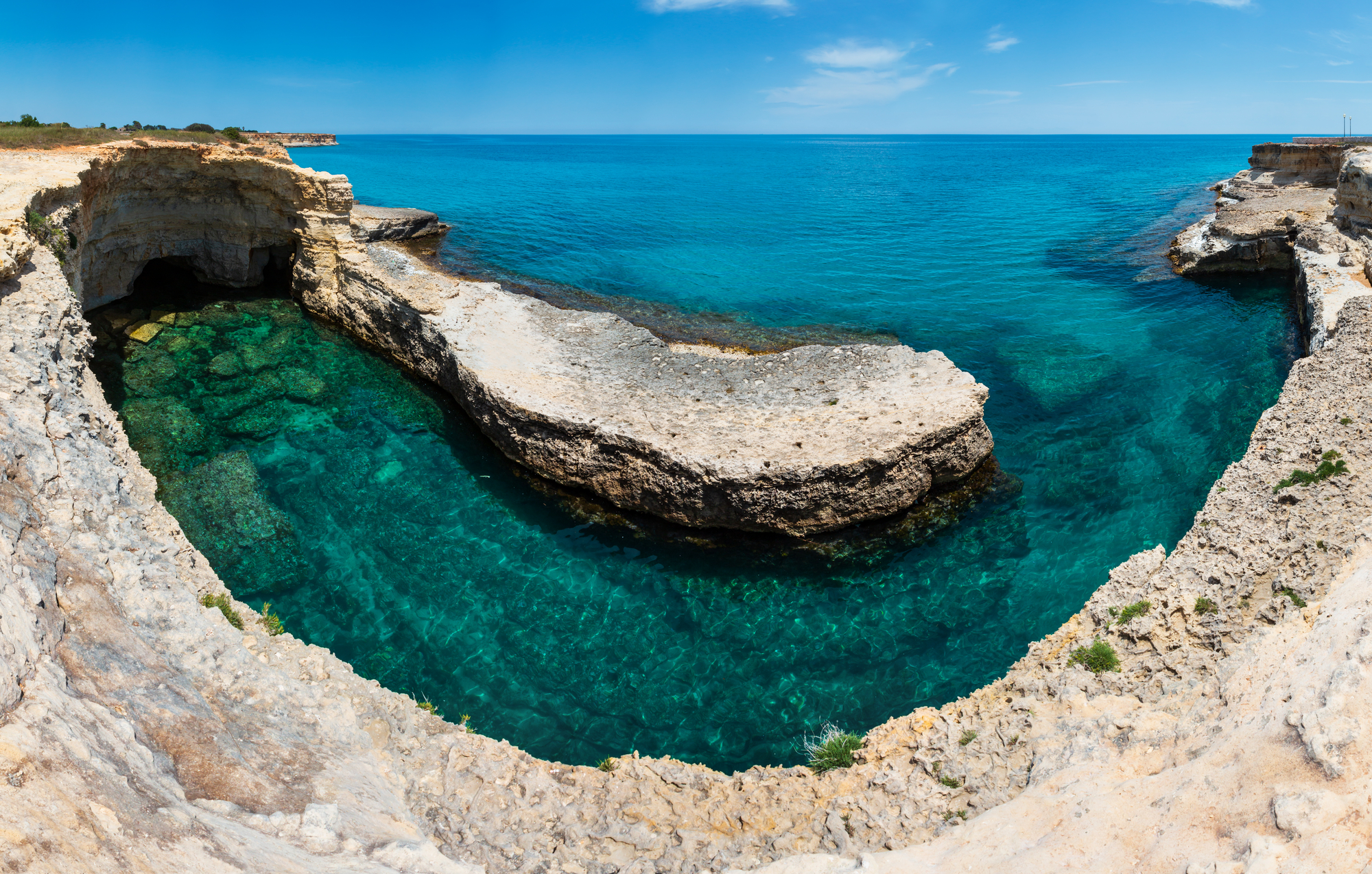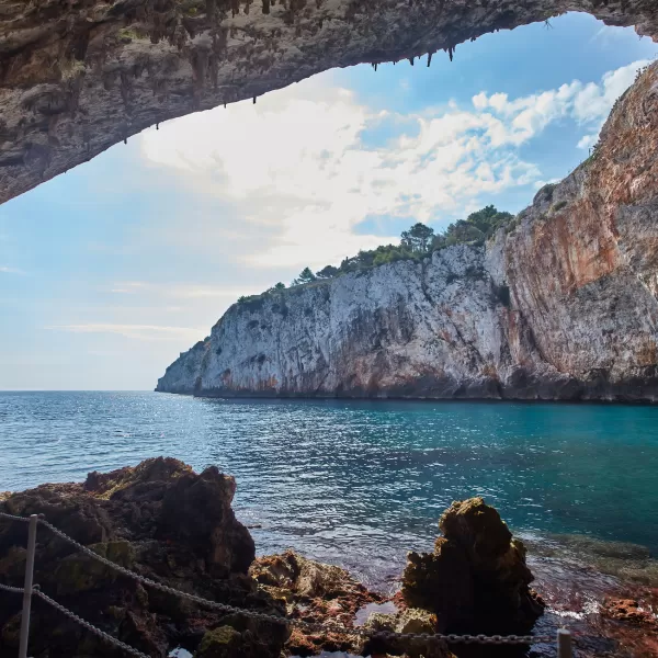 La costa vicino Santa Maria di Leuca è nota per le numerose e spettacolari Grotte marine. Tra queste: la Grotta del Diavolo, la Grotta dei Giganti, che deve il suo nome al ritrovamento di resti ossei di pachidermi, la Grotta delle 3 Porte, la Grotta della Palombara, la Grotta della Vora o Grotta della Cattedrale, la Grotta Cazzadri, la Grotta del Drago, la Grotta degli Innamorati o del Moriggio e la Grotta del Ciolo, una delle più famose sulla Costa di Leuca. Oltre ai tuffi dal ponte e all’arrampicata sulla roccia, qui si possono fare anche delle immersioni subacquee.