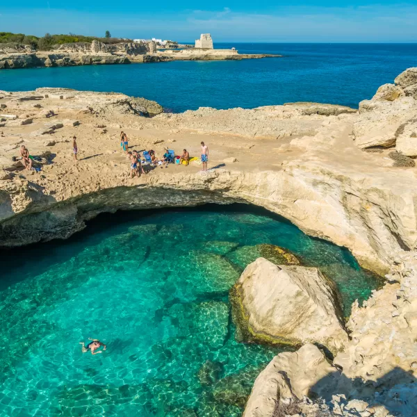 Vicino Castro Marina, raggiungibile sia da terra che dal mare, si trova la Grotta Zinzulusa, con stalattiti e stalagmiti che sembrano stracci stesi ad asciugare (gli “zinzuli” in salentino), una delle più famose e importanti manifestazioni del carsismo costiero italiano.