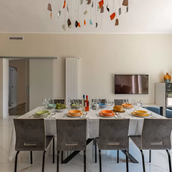 La struttura si sviluppa su un unico piano di 260 mq e dispone di un ampio soggiorno di 40 sqm con cucina, divano e tavolo da pranzo, una stanzetta ‘Fitness’, 4 camere da letto e 3 bagni, di cui due dotati di doccia e uno di vasca in muratura.